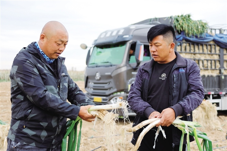 深秋時節(jié),通遼市奈曼旗沙日浩來鎮(zhèn)水泉嘎查大蔥種植基地一派繁忙的豐收景象,人們井然有序地拔蔥、捆綁、裝車,臉上洋溢著豐收的喜悅。