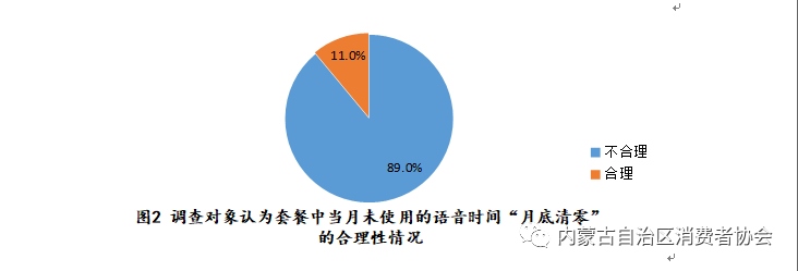1.運(yùn)營(yíng)商提供的現(xiàn)有套餐及資費(fèi)政策不合理。30.3%的調(diào)查對(duì)象認(rèn)為套餐有額外增值業(yè)務(wù)產(chǎn)生,28.3%的調(diào)查對(duì)象認(rèn)為套餐整體資費(fèi)超出所需范圍,89%的調(diào)查對(duì)象表示套餐中當(dāng)月未使用的語音時(shí)間“月底清零”不合理,所有調(diào)查對(duì)象均表示三大通訊運(yùn)營(yíng)商沒有提供無固定月租收費(fèi)標(biāo)準(zhǔn)。