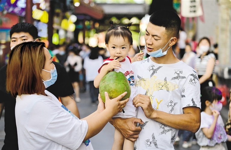6月18日,呼和浩特市民在玉泉區(qū)通順大巷小吃街上品嘗椰子汁。當日,2022年塞上老街音樂美食季在呼和浩特市玉泉區(qū)開幕。今年的音樂美食季活動共分為阿拉坦汗廣場、大召前街等六大活動區(qū)塊,推出啤酒節(jié)、美食季、快閃店、后備箱集市等八大主題活動,助力首府夜經(jīng)濟發(fā)展、夜消費繁榮,活動將持續(xù)到9月底。(記者 王磊 攝)