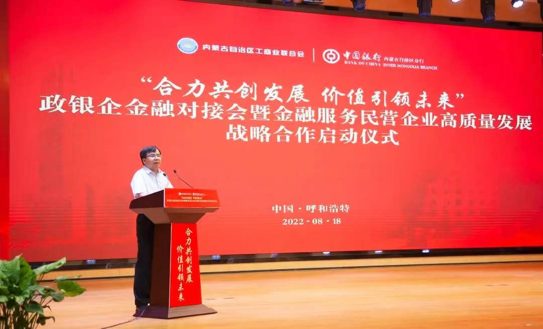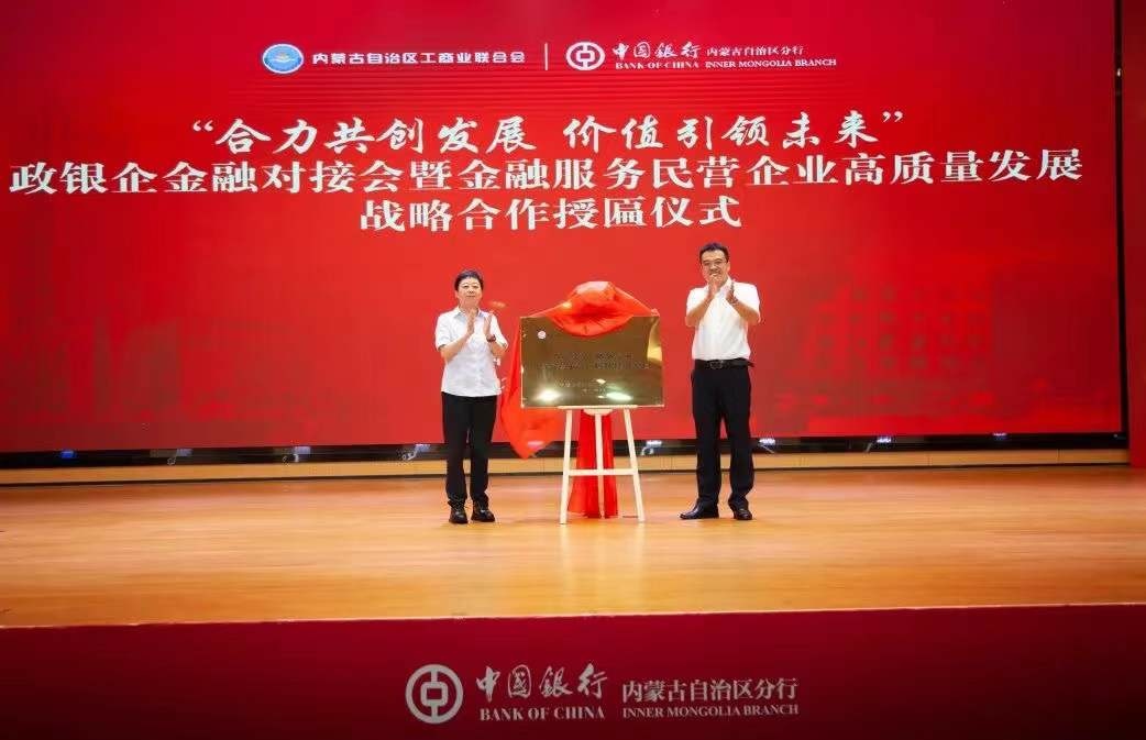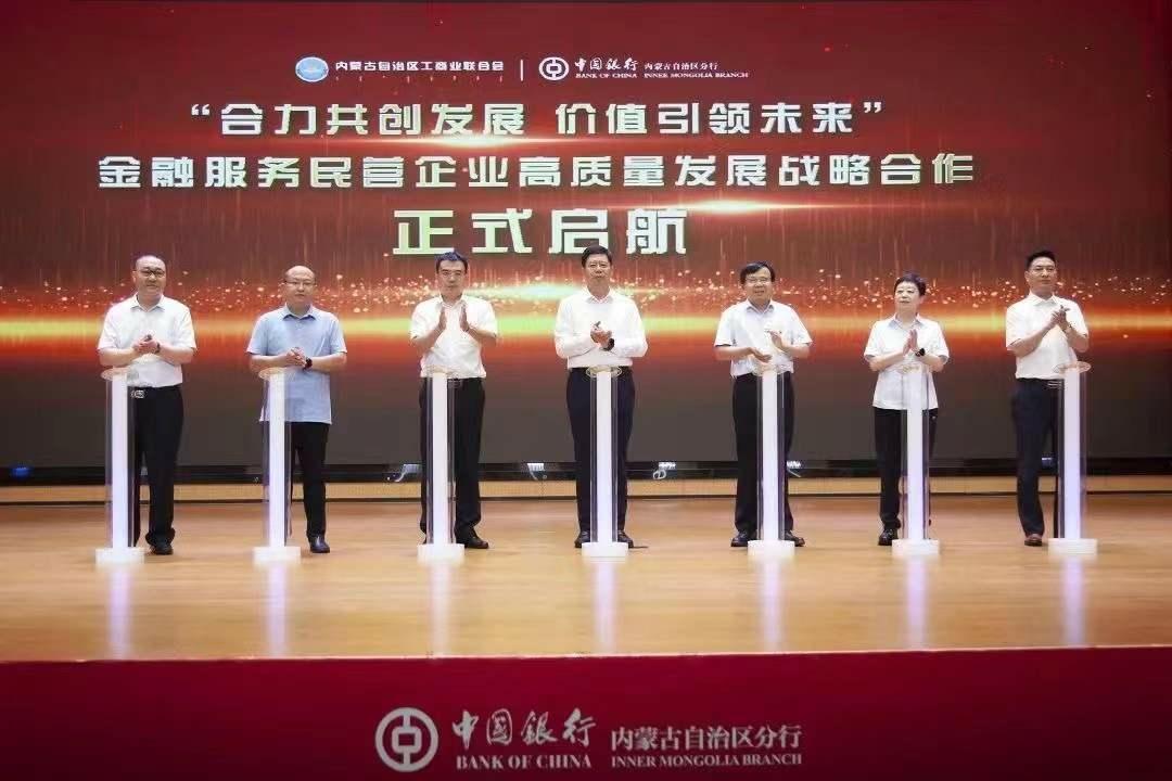 8月18日,中國(guó)銀行內(nèi)蒙古自治區(qū)分行與內(nèi)蒙古自治區(qū)工商業(yè)聯(lián)合會(huì)“合力共創(chuàng)發(fā)展 價(jià)值引領(lǐng)未來(lái)”政銀企金融對(duì)接會(huì)暨金融服務(wù)民營(yíng)企業(yè)高質(zhì)量發(fā)展戰(zhàn)略合作啟動(dòng)儀式在呼和浩特舉行。自治區(qū)政協(xié)副主席、工商業(yè)聯(lián)合會(huì)主席安潤(rùn)生,自治區(qū)工商業(yè)聯(lián)合會(huì)提名副主席溫殿龍,中國(guó)銀行內(nèi)蒙古自治區(qū)分行黨委書(shū)記、行長(zhǎng)胡文勇,中國(guó)銀行內(nèi)蒙古自治區(qū)分行黨委委員、副行長(zhǎng)雲(yún)雯妍出席活動(dòng)。自治區(qū)工商業(yè)聯(lián)合會(huì)相關(guān)部門以及行業(yè)協(xié)會(huì)、商會(huì)、企業(yè)代表,中國(guó)銀行內(nèi)蒙古自治區(qū)分行相關(guān)部門及直屬支行負(fù)責(zé)人參加活動(dòng)。