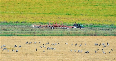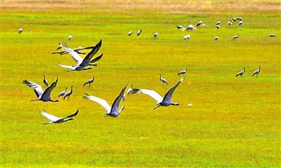 在這優(yōu)美畫卷中,蓑羽鶴就是額侖草原上的精靈,給草原平添了生命的活力。蓑羽鶴是鶴類中個(gè)體最小者,對(duì)生態(tài)環(huán)境質(zhì)量要求很高。從之前的形單影只,到現(xiàn)在的成群結(jié)隊(duì),蓑羽鶴對(duì)額侖草原的青睞,足以說明了額侖草原生態(tài)環(huán)境的保護(hù)成效。