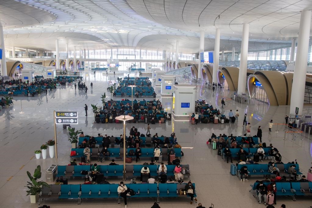1月6日,旅客在2022年9月啟用的杭州西站候車大廳內候車。新華社記者 江漢 攝