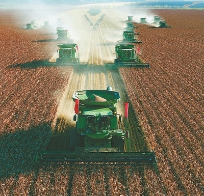 大型農(nóng)機在黑龍江省北大荒集團(tuán)九三分公司鶴山農(nóng)場高粱基地作業(yè)。 任寶吉攝
