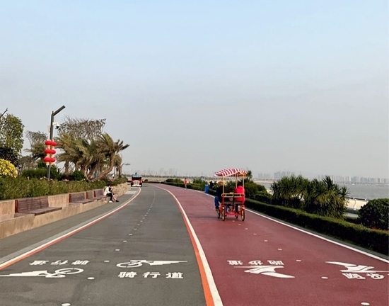 人民網(wǎng)東莞2月22日電 (記者趙雯 薛艷艷)濱海驛站坐落于廣東省東莞市濱海灣新區(qū),是東莞濱海長廊首個(gè)建成的重要節(jié)點(diǎn),緊靠海岸線,南臨前海,隔海眺望南沙自貿(mào)區(qū)、中山翠亨新區(qū)。立于驛臺(tái)前,海風(fēng)習(xí)習(xí)拂來,海天一線,日落降臨,浮光躍金。濱海驛站周邊建有廣場平臺(tái)、自行車道、沿海步道和園林綠化。濱海灣新區(qū)未來規(guī)劃建設(shè)一條長約40余公里的濱海長廊,以“運(yùn)動(dòng)廊+人文鏈+活力岸”為建設(shè)目標(biāo),打造生態(tài)海堤,不僅為游客提供親水體驗(yàn),同時(shí)也為鳥類、兩棲類動(dòng)物提供生境及遷徙通廊。