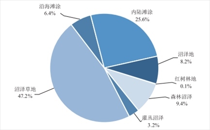 2022年度全國(guó)國(guó)土變更調(diào)查初步匯總結(jié)果顯示,全國(guó)共有濕地2357.3萬(wàn)公頃。其中,紅樹林地2.9萬(wàn)公頃,森林沼澤220.7萬(wàn)公頃,灌叢沼澤75.4萬(wàn)公頃,沼澤草地1112.9萬(wàn)公頃,沿海灘涂149.9萬(wàn)公頃,內(nèi)陸灘涂602.4萬(wàn)公頃,沼澤地193.2萬(wàn)公頃。