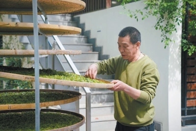 “也是巧了!原本兩周前房間就預(yù)訂光了,有個(gè)來(lái)自上海的團(tuán)隊(duì)預(yù)約到茶山采茶,但今天客人臨時(shí)調(diào)整房間,多出來(lái)一間房,你們感興趣也可以去采茶?!碑吔终f(shuō),“茶園就在后山上,走著就到了。明天上午采茶,下午晾曬,晚上炒制,當(dāng)晚就能喝到自己親手摘的綠茶了?!倍庞轩i和老伴兒聽(tīng)了很感興趣,當(dāng)即決定多住一晚。