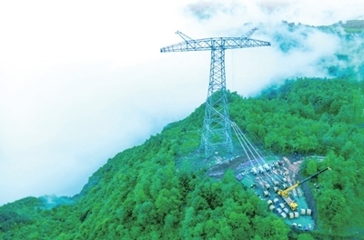 國(guó)家電網(wǎng)白鶴灘至浙江±800千伏特高壓輸電工程四川段放線現(xiàn)場(chǎng)。 盧忠東攝