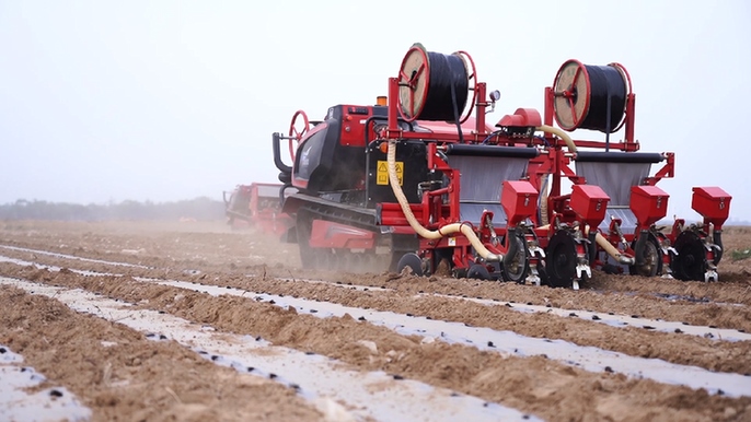 近日,在山東省德州市武城縣中椒英潮辣業(yè)發(fā)展有限公司辣椒種植示范基地,一臺(tái)無人駕駛的辣椒直播機(jī)來回穿梭,不僅將辣椒種子播種下去,同時(shí)一體化實(shí)現(xiàn)了地膜覆蓋,這也是德州市首次實(shí)現(xiàn)辣椒機(jī)械直播。