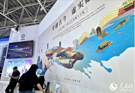 “我們對北京中軸線的場景進行了復(fù)刻,構(gòu)筑了中軸線元宇宙,如果游客觀光北京中軸線上的打卡點,用手機掃描眼前的景色,就會出現(xiàn)現(xiàn)實與虛擬交織的場景,仿佛穿越古今,置身于千百年前的時空?!北本┖訄D公司工作人員陳頌在展會現(xiàn)場介紹說。