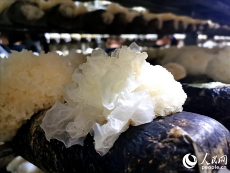 在福建省寧德市古田縣大橋鎮(zhèn)的一處標準化銀耳菇房,一個個整齊排列的架子上,培養(yǎng)基中長出一朵朵晶瑩的“白花”。由于銀耳需要避光、溫暖的生長環(huán)境,溫控智能化設(shè)備通過霧化、控溫等多項功能,模擬出銀耳在野生環(huán)境的生長條件。
