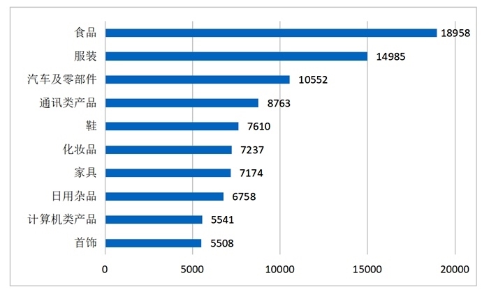 商品細分領(lǐng)域投訴前十位(單位:件)來源:中消協(xié)