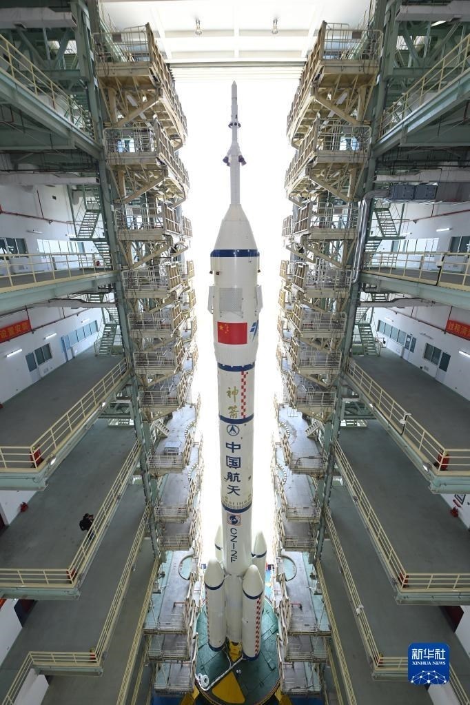 5月22日,神舟十六號(hào)載人飛船與長(zhǎng)征二號(hào)F遙十六運(yùn)載火箭組合體準(zhǔn)備轉(zhuǎn)往發(fā)射場(chǎng)。新華社發(fā)(汪江波 攝)