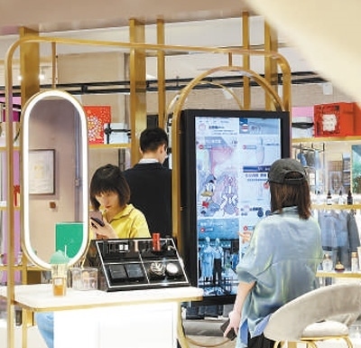 除了大型商圈,小型社區(qū)商圈的活力也被激發(fā)。沒有導(dǎo)購員、沒有收銀臺,在西安高新區(qū)蘭島廣場一間百余平方米的小店內(nèi),幾位女顧客正在試妝鏡前試用口紅、眼影等美妝產(chǎn)品。這家銀泰智慧“云店”提供了幾十個美妝品牌的上百種小樣,顧客隨到隨試,試用滿意后通過電子屏下單,同城當(dāng)日就可送達。銀泰“云店”項目負責(zé)人吳策說:“運用數(shù)字技術(shù)打通線上線下,‘云店’模式助力消費者在小型社區(qū)商圈享受優(yōu)質(zhì)的購物體驗?!?/p>