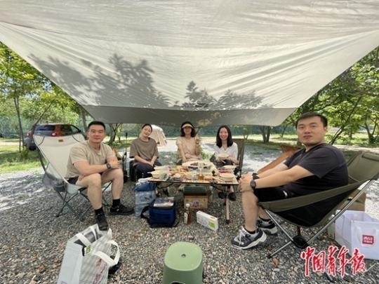 露營基地的露營者們。圖片均為中青報·中青網(wǎng)見習(xí)記者 裴思童/攝