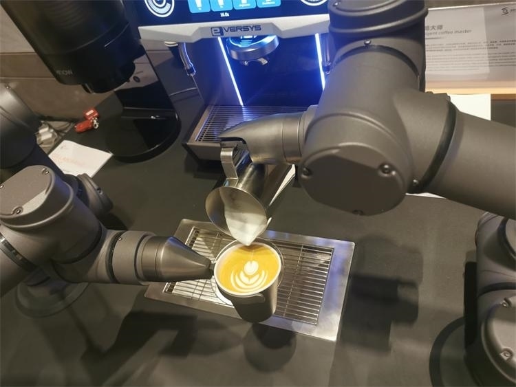 磨粉、過(guò)濾、注水、沖泡、拉花……短短75秒,智能咖啡大師就憑借著兩只靈活又穩(wěn)重的機(jī)械臂,制作出一杯帶拉花圖案的香濃咖啡?!拔覀兊臋C(jī)械臂拉花都是由咖啡大師調(diào)教的,很精準(zhǔn),如果說(shuō)有時(shí)候人可能存在失誤的情況,那么機(jī)器人不會(huì)。”遨博山東智能機(jī)器人有限公司調(diào)試工程師崔玉坤告訴記者,這臺(tái)機(jī)器目前可以做出4個(gè)品類6個(gè)花型的拉花效果,后期可以支持在線升級(jí)和擴(kuò)充。