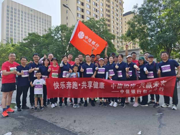 賽場上,在由包頭市當?shù)馗鞔笃髽I(yè)組織的健康跑跑團中,中信銀行包頭分行組織33名職工和馬拉松愛好者踴躍參賽,著裝整齊,精神飽滿,以實際行動踐行“快樂奔跑共享健康中信相伴共贏未來”,展現(xiàn)了中信銀行人奮力拼搏、奮勇向前的精神風貌,成為本屆馬拉松賽事上一道亮麗的金融風景線。