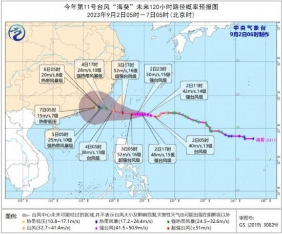 9月2日08時(shí)至3日08時(shí),受“蘇拉”影響,南海西北部、北部灣東部、瓊州海峽及廣東沿海、廣西南部沿海、珠江口以及香港和澳門等地將有7-9級(jí)、陣風(fēng)10-11級(jí)的大風(fēng),“蘇拉”中心經(jīng)過的附近海面或地區(qū)風(fēng)力有12-13級(jí)、陣風(fēng)14-15級(jí);受“??庇绊懀_(tái)灣海峽、浙江南部沿海、福建沿海、廣東東部沿海、臺(tái)灣島沿海將有6-7級(jí),陣風(fēng)8級(jí)大風(fēng),臺(tái)灣以東洋面部分海域風(fēng)力可達(dá)8-10級(jí),陣風(fēng)11-12級(jí),“海葵”中心經(jīng)過的附近海面風(fēng)力可達(dá)12-13級(jí),陣風(fēng)14級(jí)。