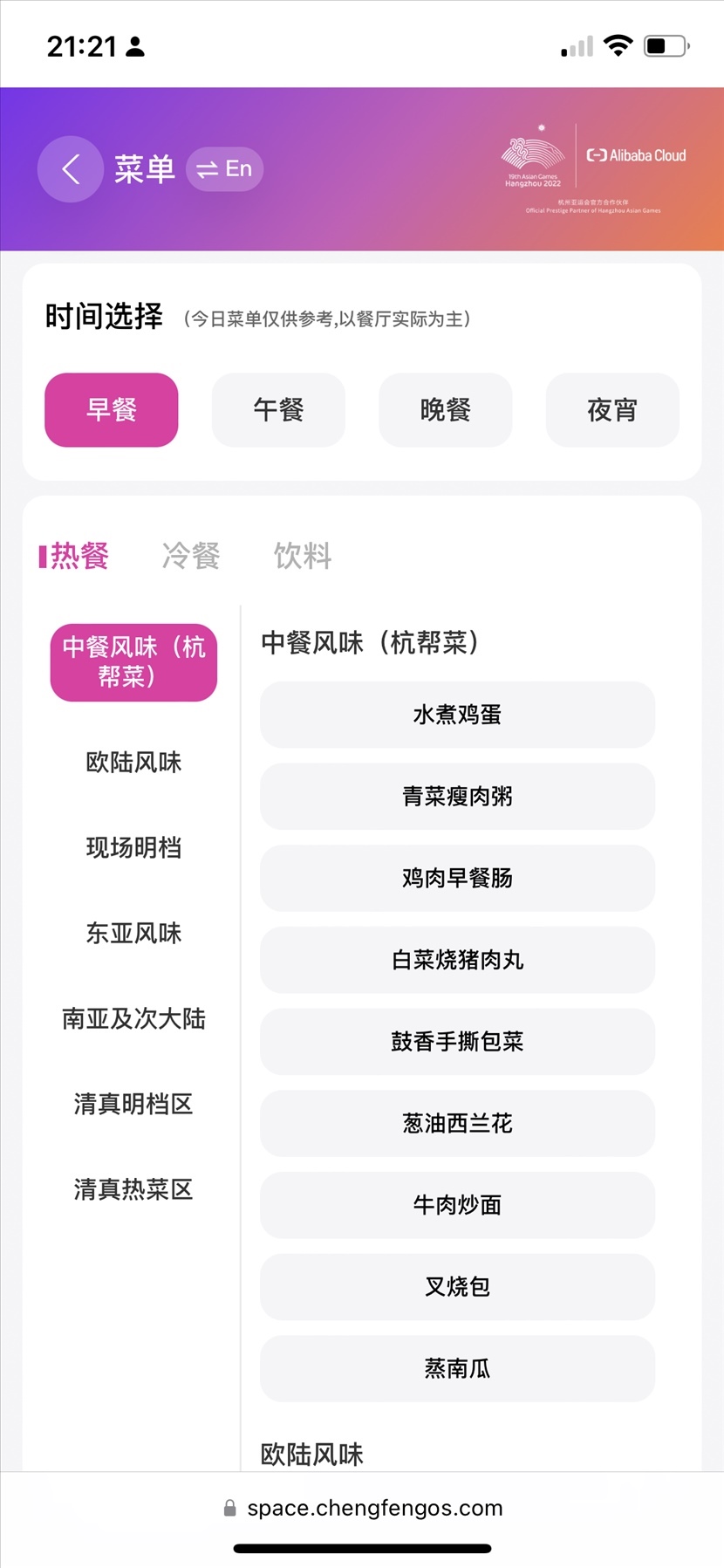 老鴨蘿卜湯、宋嫂魚(yú)羹、雪菜蒸鱸魚(yú)、東坡肉、京蔥爆牛肉……打開(kāi)云上亞運(yùn)村的 “云上通”小程序,各色餐食便可隨意選擇預(yù)約。不僅傳統(tǒng)中餐,“歐陸風(fēng)味”“東亞風(fēng)味”“東南亞及次大陸”各式特色餐食,也可根據(jù)個(gè)人喜好和時(shí)間安排進(jìn)行性選擇。同時(shí),還可以隨時(shí)查看餐廳的實(shí)時(shí)人流量。