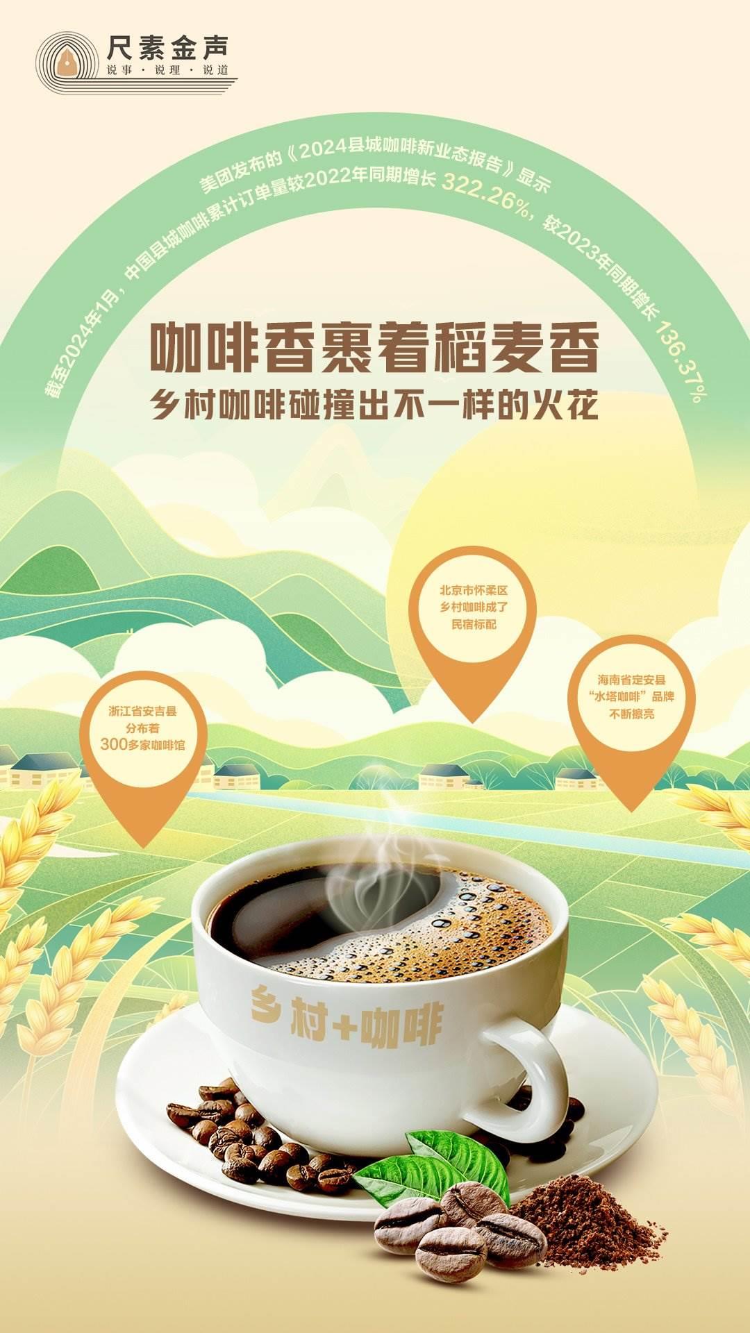 咖啡香裹著稻麥香,吹遍田野?!翱Х?”成為鄉(xiāng)村旅游新業(yè)態(tài)。美團發(fā)布的《2024縣城咖啡新業(yè)態(tài)報告》顯示,截至2024年1月,中國縣城咖啡累計訂單量較2022年同期增長322.26%,較2023年同期增長136.37%。鄉(xiāng)村咖啡火出圈,背后靠什么?
