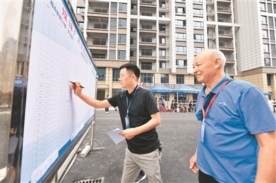 近年來(lái),湖北省襄陽(yáng)市保康縣持續(xù)改善城市人居環(huán)境、提升城市功能與品位,讓群眾住有所居、安居宜居的夢(mèng)想不斷成為美好現(xiàn)實(shí)。圖為??悼h新型城鎮(zhèn)化項(xiàng)目國(guó)投·梅嶺新居小區(qū)開(kāi)展分房選房工作時(shí),工作人員在填寫(xiě)房源分配信息。楊 韜攝(人民視覺(jué))