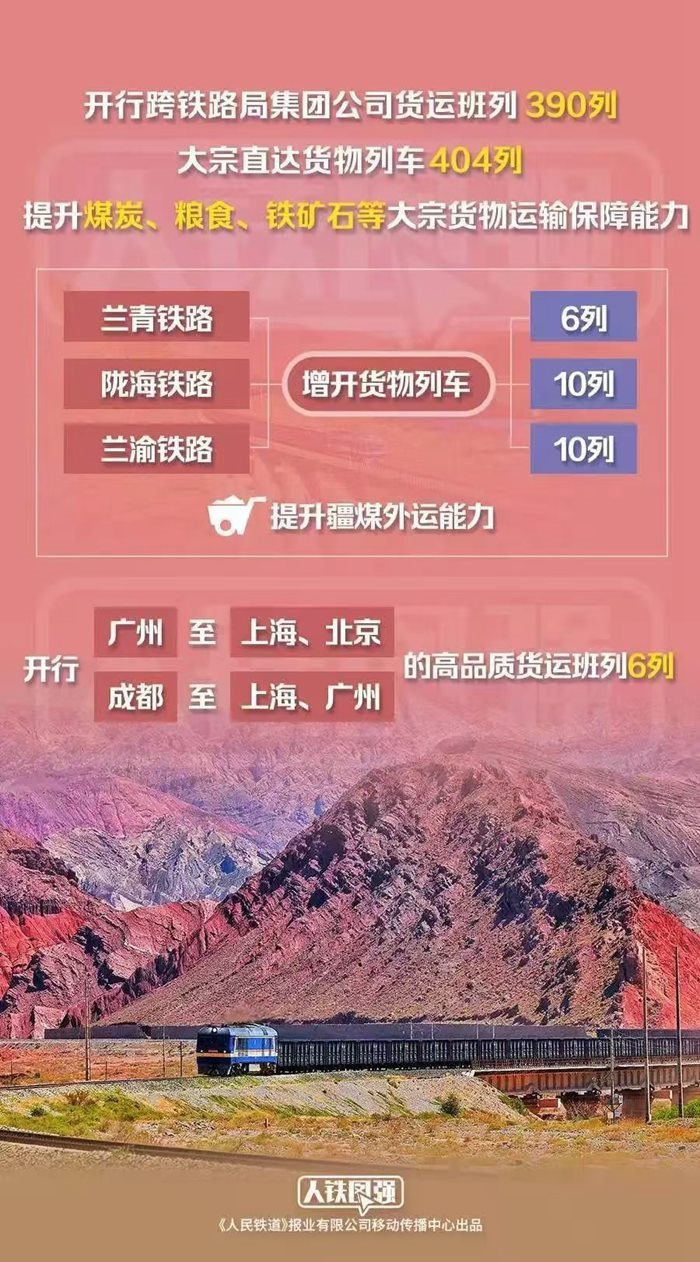 貨運方面,鐵路部門統(tǒng)籌運用線路、場站資源,安排開行跨鐵路局集團公司貨運班列390列,大宗直達貨物列車404列,提升煤炭、糧食、鐵礦石等大宗貨物運輸保障能力,為冬季能源保供和國民經(jīng)濟平穩(wěn)運行提供有力支撐。其中,優(yōu)化調(diào)整蘭州鐵路樞紐列車運行方案,蘭青、隴海、蘭渝鐵路分別增開貨物列車6列、10列、10列,提升疆煤外運能力。適應(yīng)貨運市場需求,優(yōu)化貨運班列產(chǎn)品供給,開行廣州至上海、北京,成都至上海、廣州的高品質(zhì)貨運班列6列,串聯(lián)京津冀、長三角、粵港澳大灣區(qū)、成渝地區(qū)等主要經(jīng)濟區(qū)域,打造快捷物流產(chǎn)品示范線。