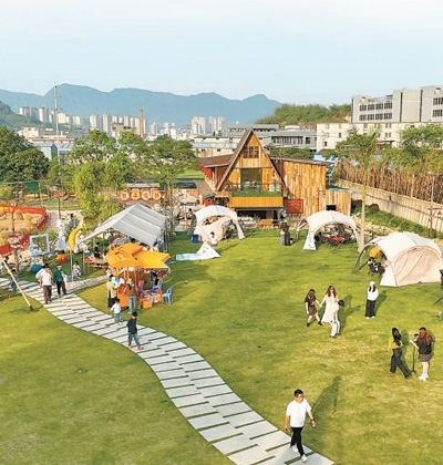 荒地變身文藝小院,游客在福州市羅源縣鳳山鎮(zhèn)新亭自然村“新亭驛站”體驗(yàn)園中游覽。