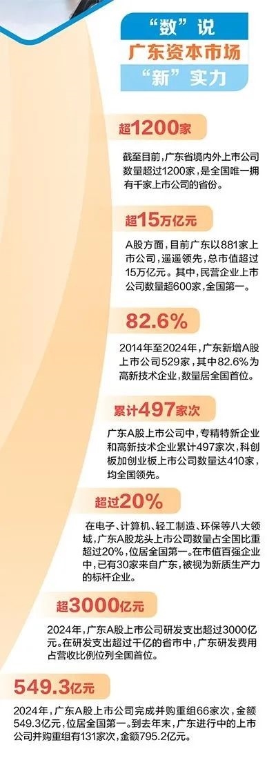 這一并購為廣東助力企業(yè)打通技術突破與產(chǎn)業(yè)升級通道,實現(xiàn)跨越式發(fā)展寫下有力注腳。2024年,上市粵企完成并購重組66家次,金額549.3億元,位居全國第一;截至今年一季度末,廣東進行中的上市公司并購重組有146家次,金額562.1億元。更令人振奮的是,廣東已成立資本市場并購重組聯(lián)盟、創(chuàng)立并購重組“標的庫”、明確大力發(fā)展并購基金和二手份額轉讓基金,為上市公司提質增效、戰(zhàn)略轉型開辟“快車道”。