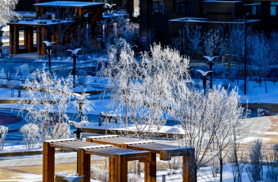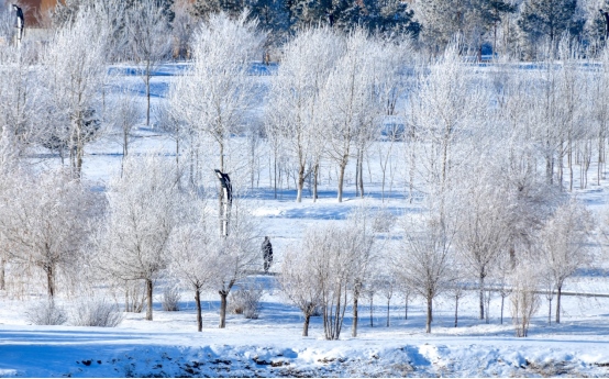 據(jù)了解,霧凇俗稱冰花、樹掛等,是低溫時(shí)空氣中水汽直接凝華,或過冷霧滴直接凍結(jié)在物體上的乳白色冰晶沉積物,表現(xiàn)為白色不透明的粒狀結(jié)構(gòu)沉積物。霧凇形成需要?dú)鉁睾艿?,而且水汽又很充分的自然條件,是非常難得的自然奇觀。