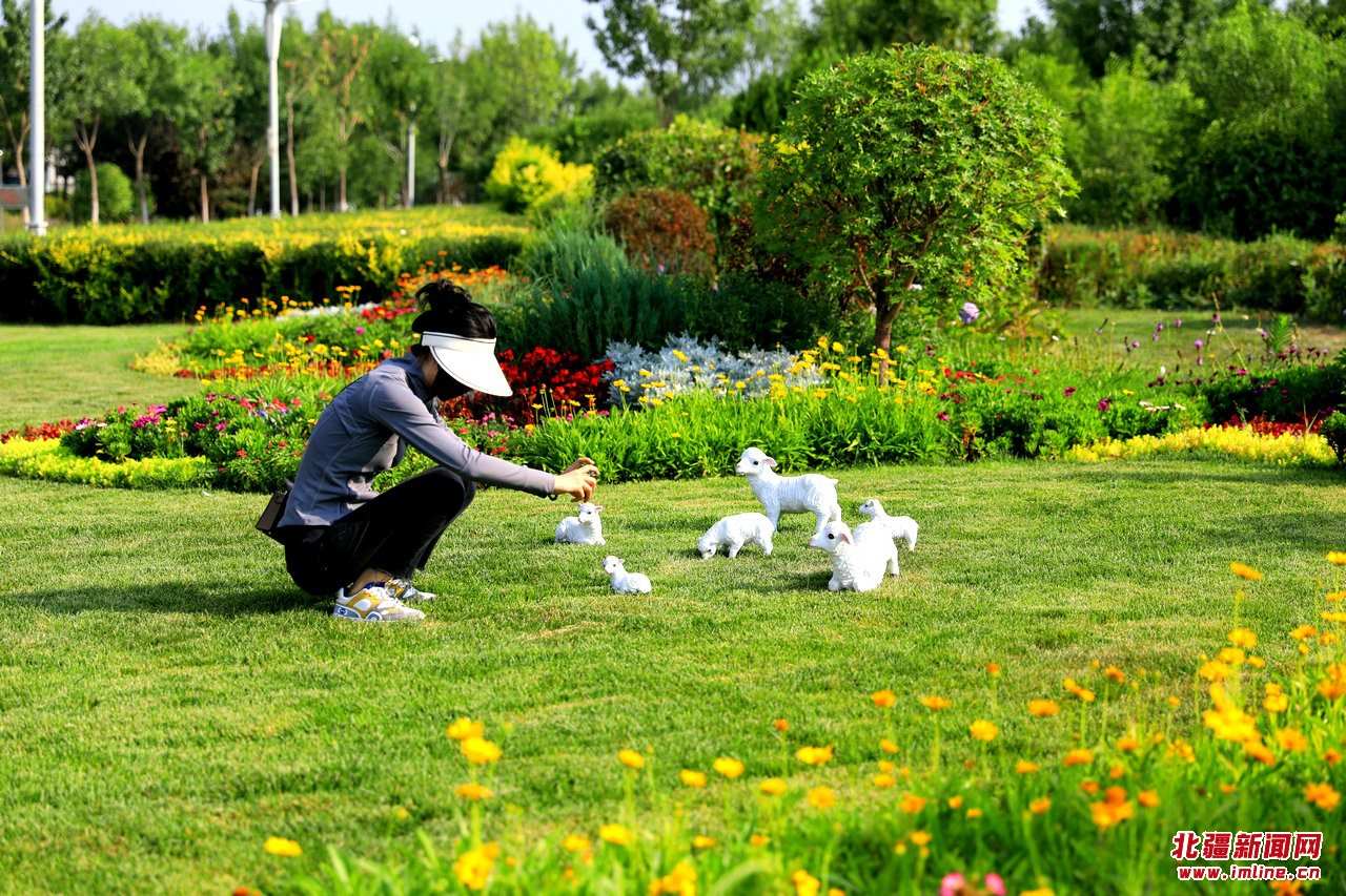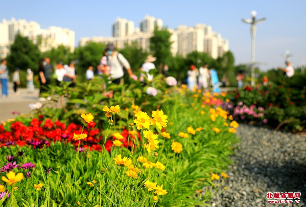 8月4日,呼和浩特市草原絲綢之路文化公園,一處280平方米的花境吸引眾多游人前來(lái)參觀打卡。
