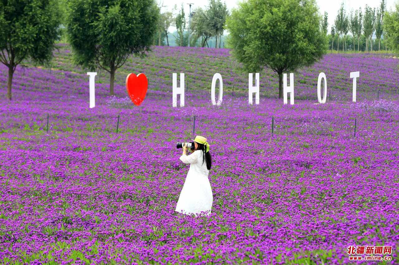 8月4日,市民在呼和浩特馬鞭草花?!按蚩ā?。