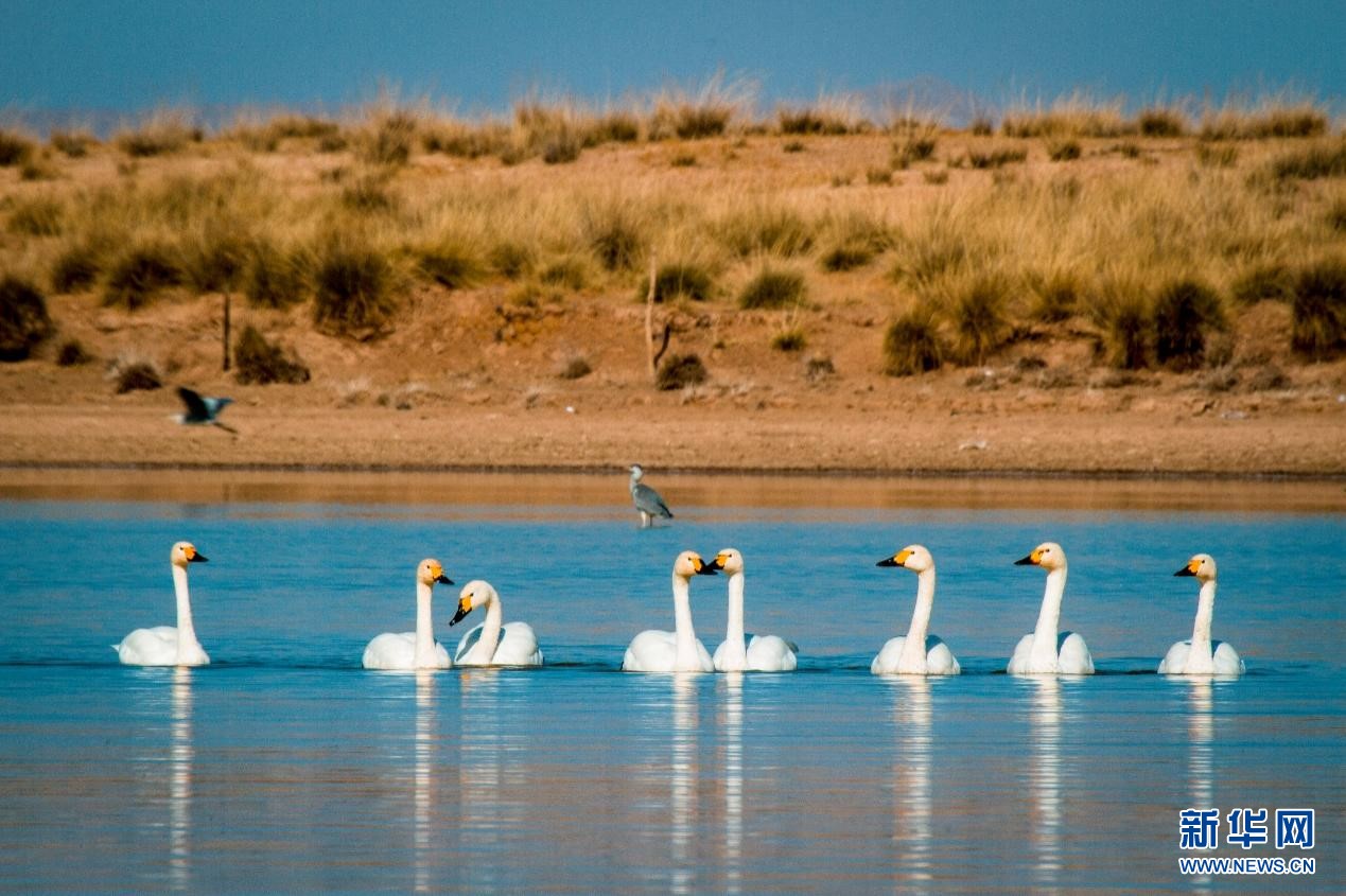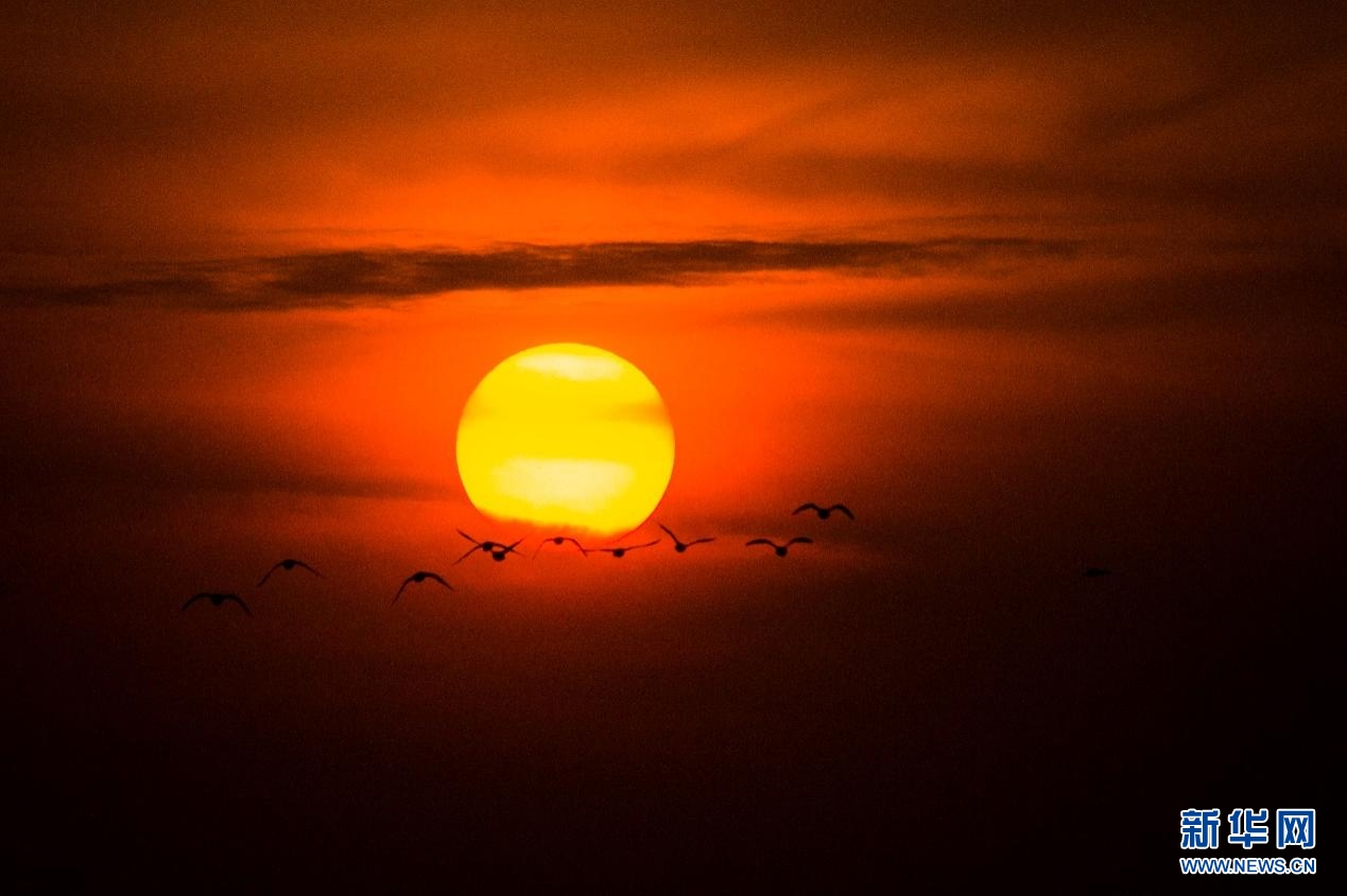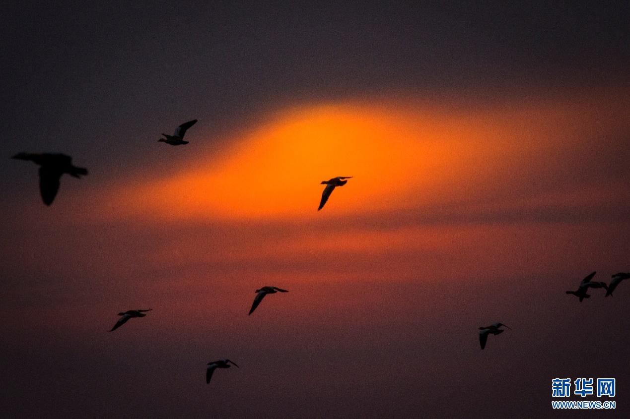 候鳥與夕陽。新華網(wǎng)發(fā)(董靜 攝)