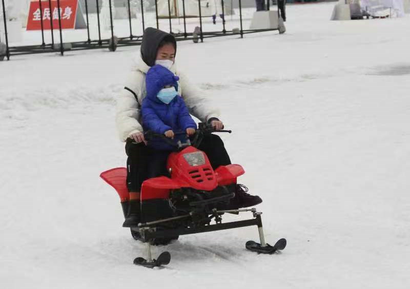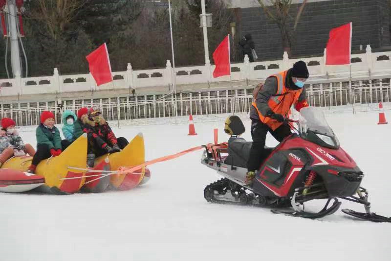 本屆冰雪季活動(dòng)冰雪場(chǎng)地面積達(dá)19萬平方米,共有17類冰雪游玩項(xiàng)目,一次性可接待人流量約8000人。
