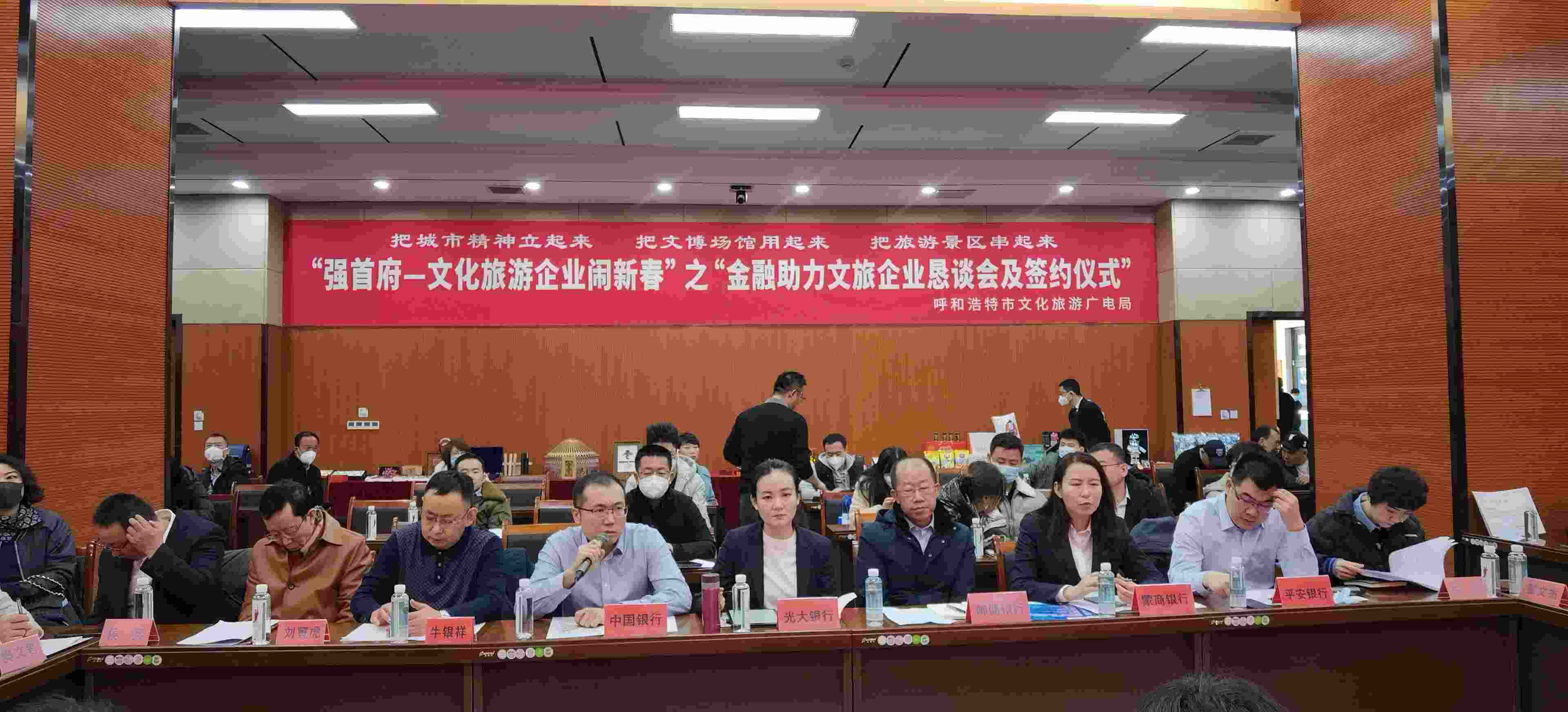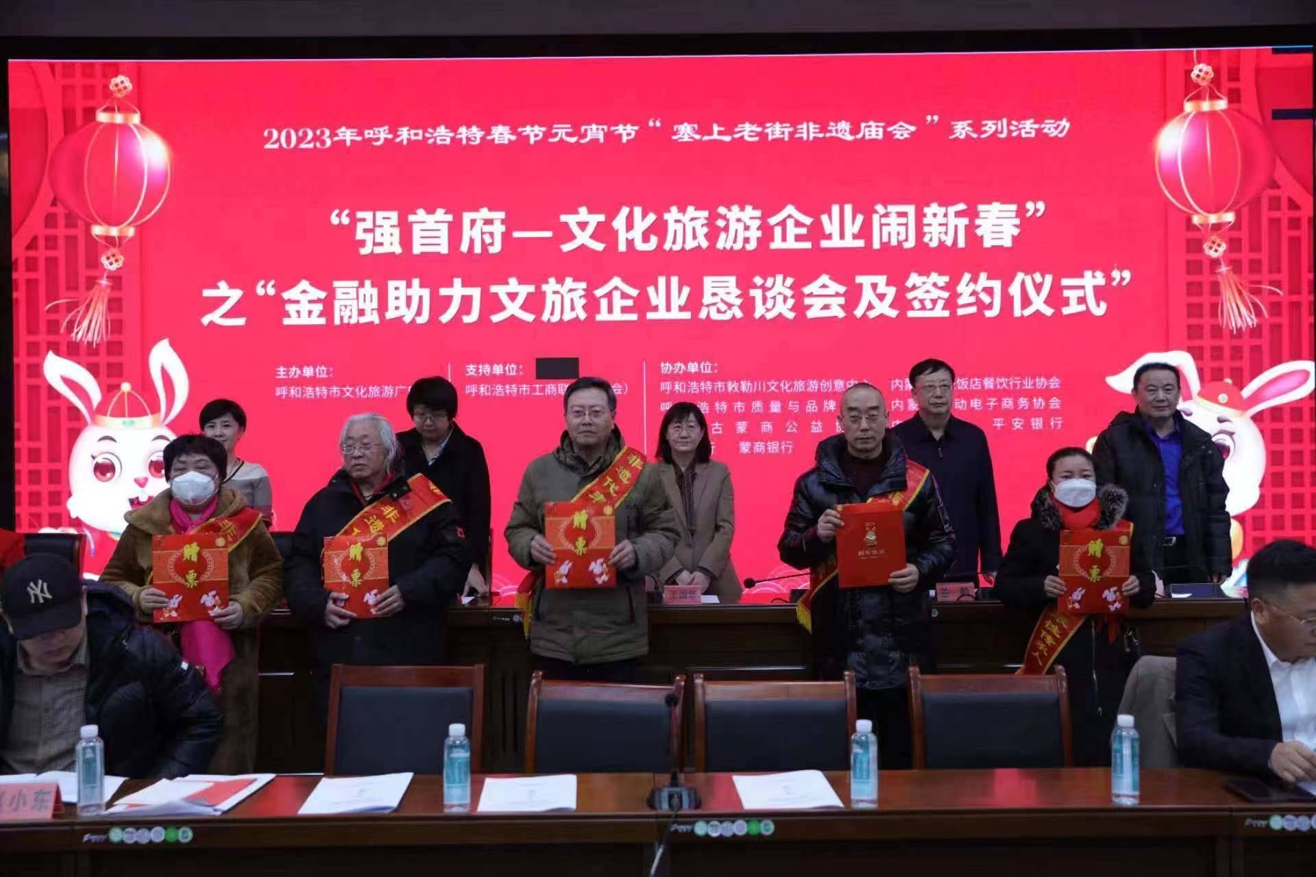 2月4日,呼和浩特市文化旅游廣電局與呼市工商聯(總商會)舉辦“強首府—文化旅游企業(yè)鬧新春”之“金融助力文旅企業(yè)懇談會及簽約儀式”,共同為首府提振市場信心、促進文化旅游產業(yè)高質量發(fā)展、促進首府“六大產業(yè)集群”作出貢獻?! ?/p>
