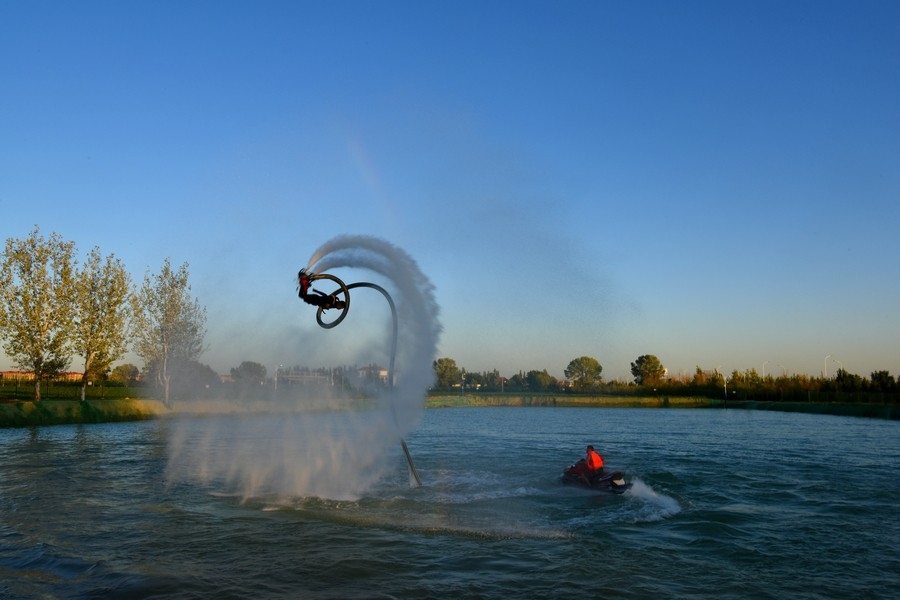 游客乘坐摩托艇感受水上的驚險刺激 記者 張楊攝影