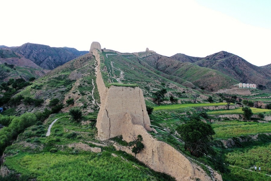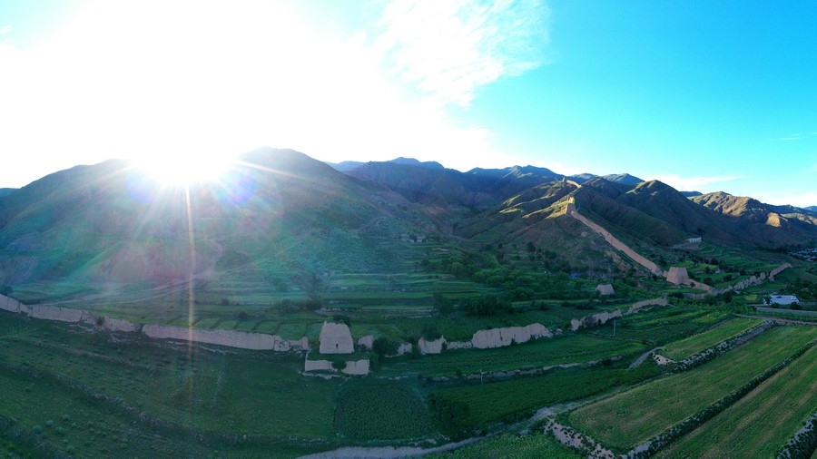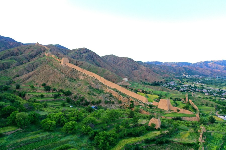8月16日,從空中視角,俯瞰山西大同天鎮(zhèn)李二口長城。