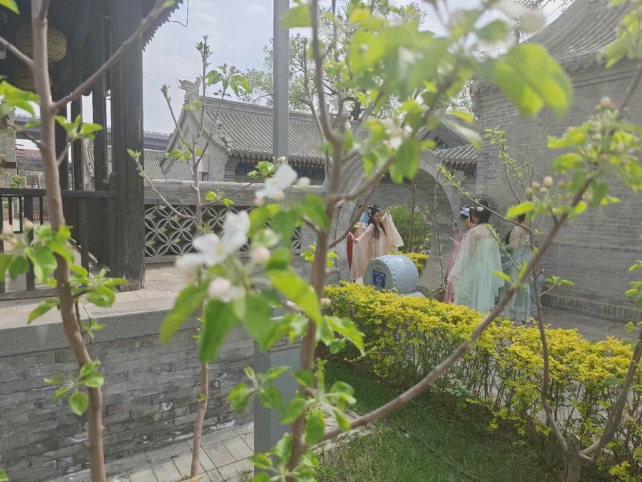 4月18日,內(nèi)蒙古呼和浩特將軍衙署博物院內(nèi)的杏花、桃花、丁香花等百花齊放,芬芳馥郁,吸引眾多游客前來(lái)觀賞拍照。