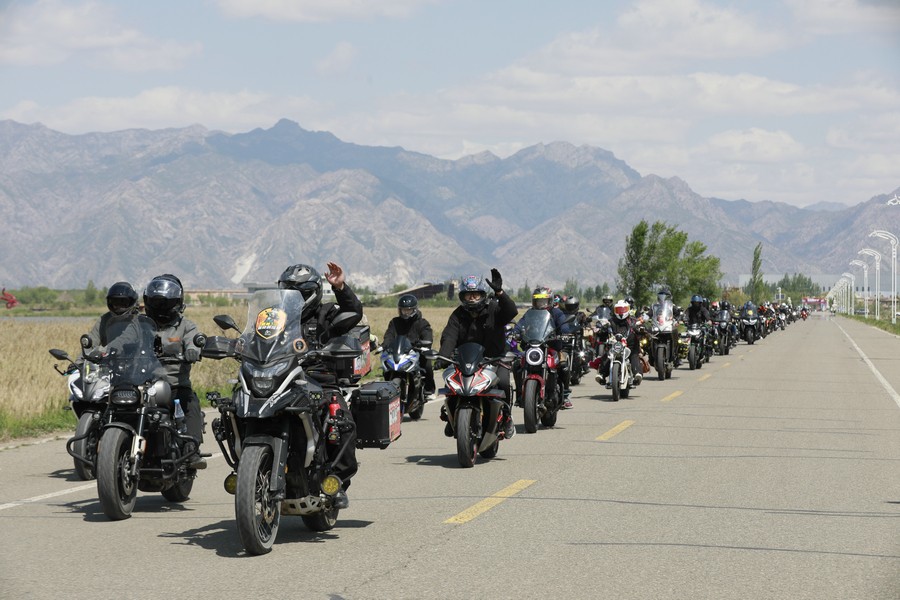 600多輛機(jī)車沿著哈素海湖畔炫酷巡游