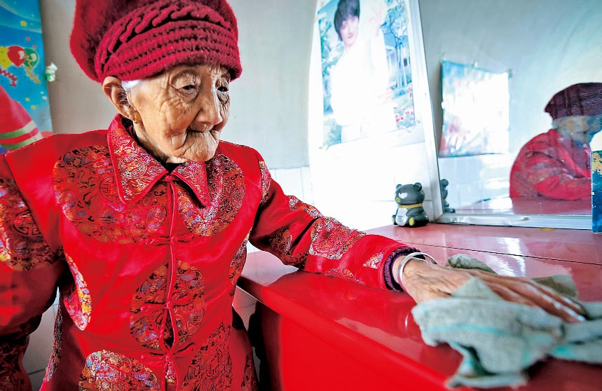 老人的兒孫們?nèi)缃翊蠖喽荚谕鈱W(xué)習(xí)、工作、做生意,大家族的成員日子都過得紅紅火火。對于老人來說,子孫滿堂是最幸福的事;對于孩子們來說,老人健康長壽,也是他們最大的愿望。五世同堂,98口人,百歲老人賈先女露出幸福的笑容。