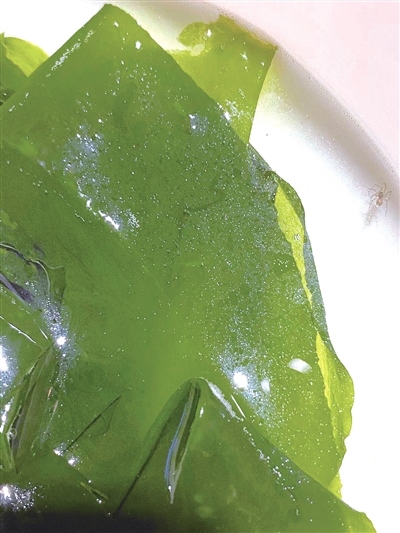 據(jù)劉女士回憶,8月9日晚,她和女兒到鄂爾多斯市伊金霍洛旗額爾敦傳統(tǒng)涮(伊旗店)吃飯,母女二人正吃得暢快之際,突然發(fā)現(xiàn)在一盤(pán)海帶里有一只蜘蛛(如圖),在盤(pán)子里爬來(lái)爬去,看見(jiàn)這一幕,母女二人胃口全無(wú)。隨即,劉女士和服務(wù)人員進(jìn)行了溝通。