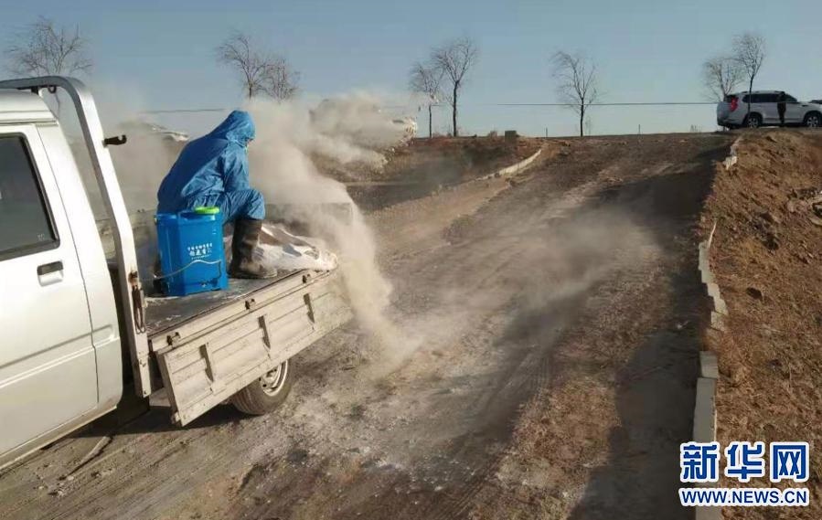 3月21日,達(dá)拉特旗疫控人員對黃河國堤內(nèi)死豬丟棄區(qū)域進(jìn)行消毒。新華社發(fā)