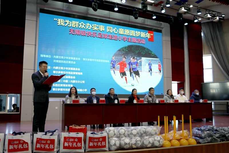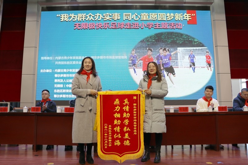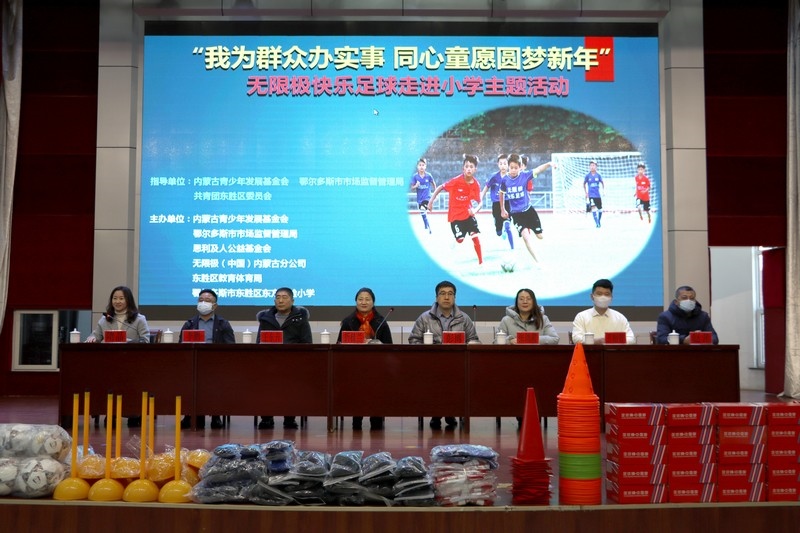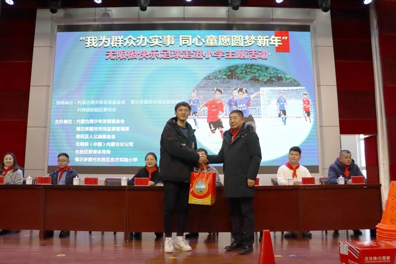 北疆新聞網(wǎng)、北疆新聞APP、北疆云消息 12月3日,思利及人公益基金會(huì)、無(wú)限極(中國(guó))內(nèi)蒙古分公司攜手內(nèi)蒙古青少年發(fā)展基金會(huì)、鄂爾多斯市市場(chǎng)監(jiān)督管理局、共青團(tuán)東勝區(qū)委員會(huì)、東勝區(qū)教育體育局、無(wú)限極內(nèi)蒙古志愿者協(xié)會(huì)走進(jìn)內(nèi)蒙古鄂爾多斯市東勝區(qū)東方實(shí)驗(yàn)小學(xué),開(kāi)展“我為群眾辦實(shí)事 同心童愿圓夢(mèng)新年”無(wú)限極快樂(lè)足球慰問(wèn)公益活動(dòng)。為學(xué)校的孩子們送上了一份特別的禮物,由“無(wú)限極快樂(lè)足球”公益項(xiàng)目提供的足球、球服、球鞋、繞桿、訓(xùn)練桶等足球裝備和訓(xùn)練器材。孩子們?cè)谑盏骄栀?zèng)后,露出開(kāi)心燦爛的笑容。