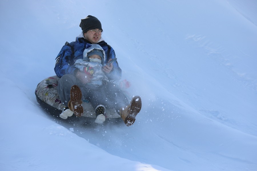 冰滑梯上感受冰雪刺激 記者 張楊攝影