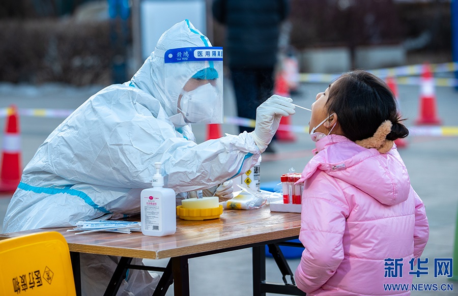 2月21日,在呼和浩特市玉泉區(qū)興隆巷街道芳清園小區(qū)臨時(shí)核酸采樣點(diǎn),點(diǎn)位長(zhǎng)在核酸采樣現(xiàn)場(chǎng)工作。新華網(wǎng)發(fā) (丁根厚 攝)
