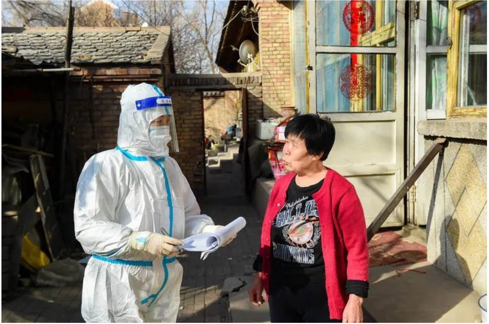 ↑3月6日,在呼和浩特市賽罕區(qū)東瓦窯社區(qū),網(wǎng)格員(左)帶領(lǐng)醫(yī)務工作者為次密接群眾上門做核酸檢測。