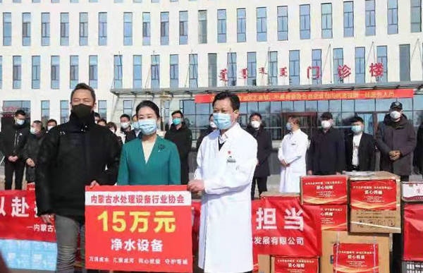 北疆新聞網(wǎng)、北疆新聞APP、北疆云消息 2022年春節(jié)假期過后,呼和浩特突發(fā)新冠疫情。內(nèi)蒙古水處理設(shè)備行業(yè)協(xié)會積極響應(yīng)內(nèi)蒙古自治區(qū)工商聯(lián)的號召,配合呼和浩特市工商聯(lián),向會員單位發(fā)起向疫區(qū)捐款捐物抗擊疫情的倡議。到目前為止,內(nèi)蒙古水處理設(shè)備行業(yè)協(xié)會攜會員企業(yè)累計向一線的抗疫人員捐贈了價值20多萬元的抗疫物資。