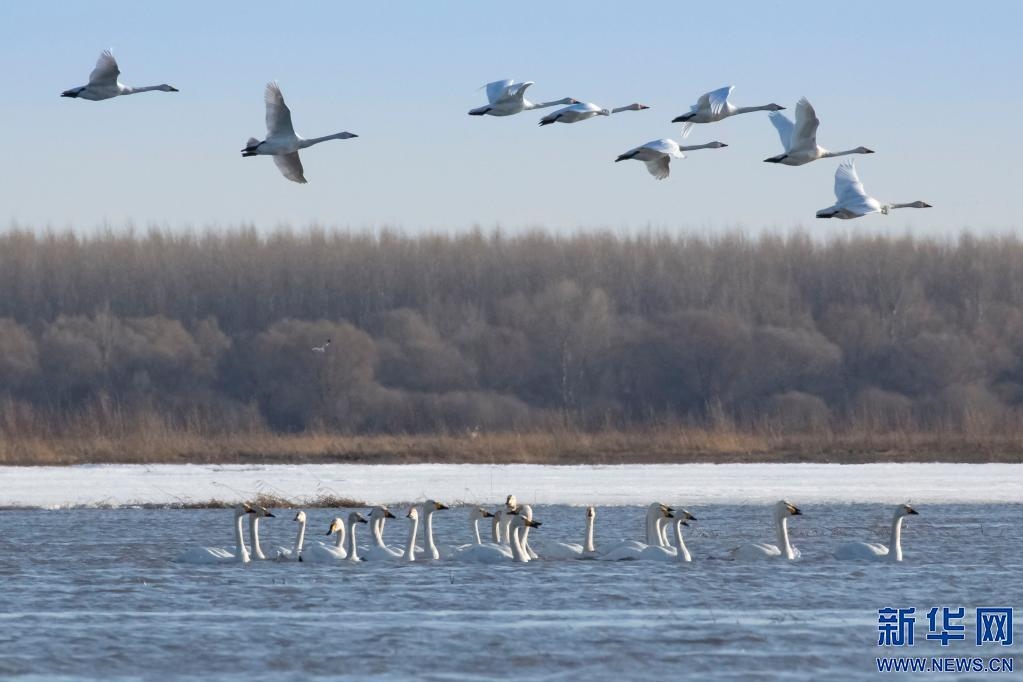 小天鵝翔集科爾沁國家級自然保護區(qū)。(王永生 攝)