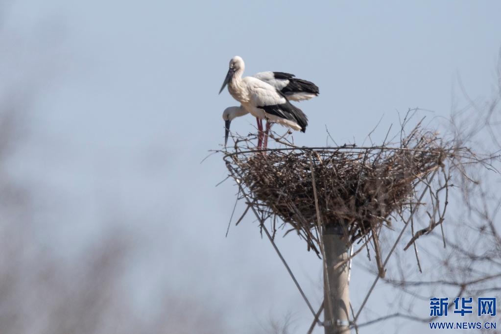 “我們在不同的地點安置了十幾個人工巢,目前我們發(fā)現(xiàn)一對東方白鸛已經(jīng)在人工巢上筑巢,為繁殖做著準備。這說明人工輔助的手段很重要,接下來會有更多的東方白鸛在這里筑巢繁殖,恢復20多年前的往日景象?!笨茽柷邍壹壸匀槐Wo區(qū)管理局副局長于有忠欣喜地說?! ?/p>