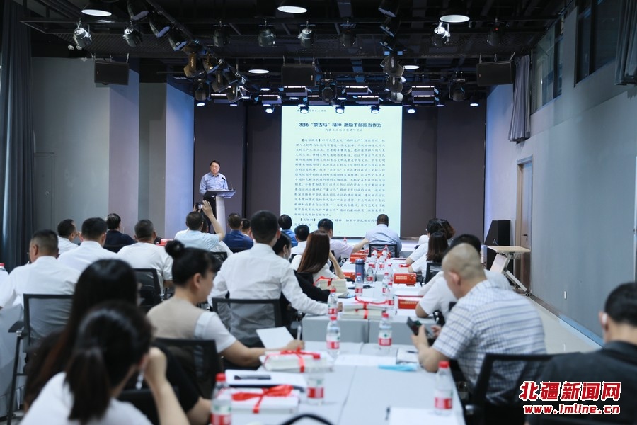 “蒙古馬精神,是吃苦耐勞的奉獻(xiàn)精神、一往無(wú)前的進(jìn)取精神、不達(dá)目的決不罷休的奮斗精神。它的本質(zhì)是赤膽忠心的精神,發(fā)揚(yáng)的是忠于職守的精神,做到了不忘初心、牢記使命的現(xiàn)實(shí)途徑?!碑?dāng)天,內(nèi)蒙古自治區(qū)黨建研究會(huì)特邀研究員、呼倫貝爾市委原二級(jí)巡視員、原內(nèi)蒙古森工集團(tuán)組織部部長(zhǎng)哈斯,為所有黨員講授“蒙古馬精神”主題黨課。