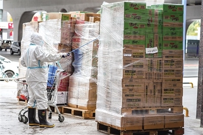 據(jù)了解,家家悅確保每日運送新鮮瓜果外,倉庫里還備齊了日用品、零食等居民生活必備品。每天一早,倉庫工作人員會按照線下各實體店所需進(jìn)行選品,分揀員認(rèn)真分揀,運輸人員按時送達(dá)。商品抵達(dá)實體店后,實體店工作人員對運貨車輛及所運物品進(jìn)行消殺,再上架供超市工作人員按照訂單進(jìn)行分包,收銀臺工作人員掃碼打印出支付賬單,由配送員送到居民手中。