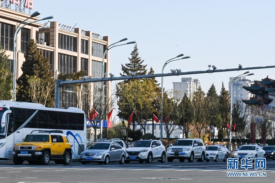11月17日在呼和浩特市新城區(qū)拍攝的街道上的車輛。新華社記者 王澤聰 攝